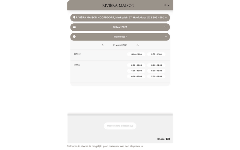 Brick and mortar stores need to improve the customer experience to stay viable. And one of the things to improve the customer experience is to have the option to shop by appointment. That is where GoMeddo comes in. It offers Rivièra Maison’s customers the possibility to book an appointment at the store of their choosing on any device and even at times when the call center is closed. GoMeddo immediately sends a confirmation so the customer can safely plan his day.